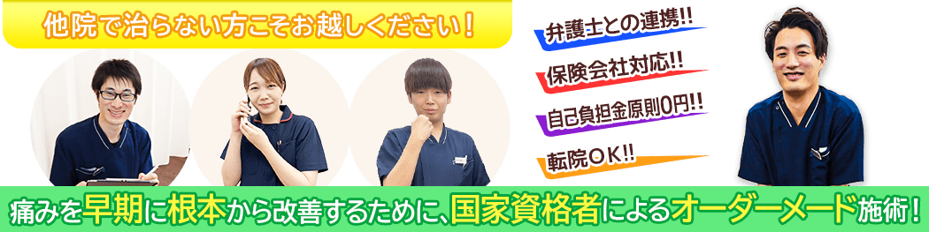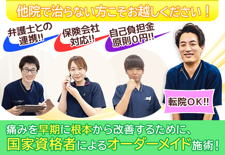 通院していてもなかなか後遺症の痛みが改善されないという方は、ぜひ当院にお任せください。